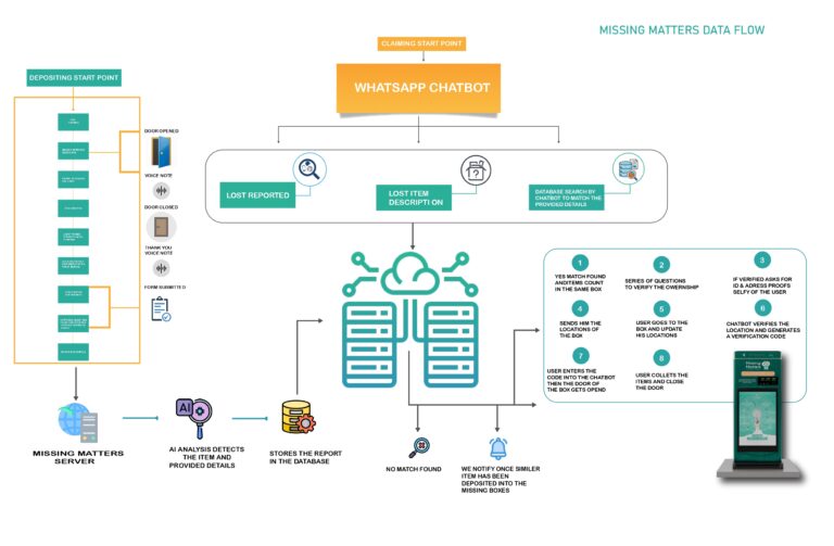A technology-enabled system integrating physical kiosks, digital interfaces, and secure verification protocols to streamline lost-and-found processes across public spaces.